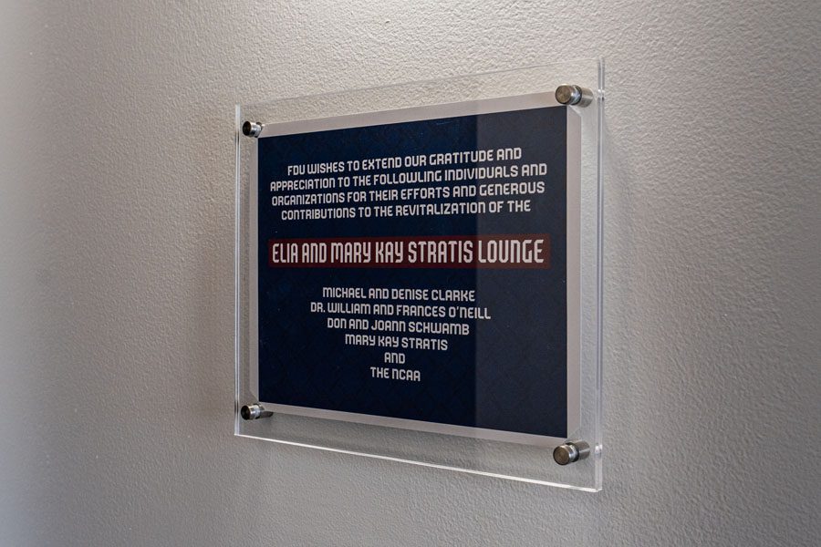 Following Elia’s tragic passing in 1988, Mary Kay honored his memory through sustained support of FDU Athletics and student scholarships. Her philanthropy has provided critical financial assistance to students, strengthened athletic programs, and enhanced campus spaces where students gather, connect, and grow, including the Stratis Lounge itself.