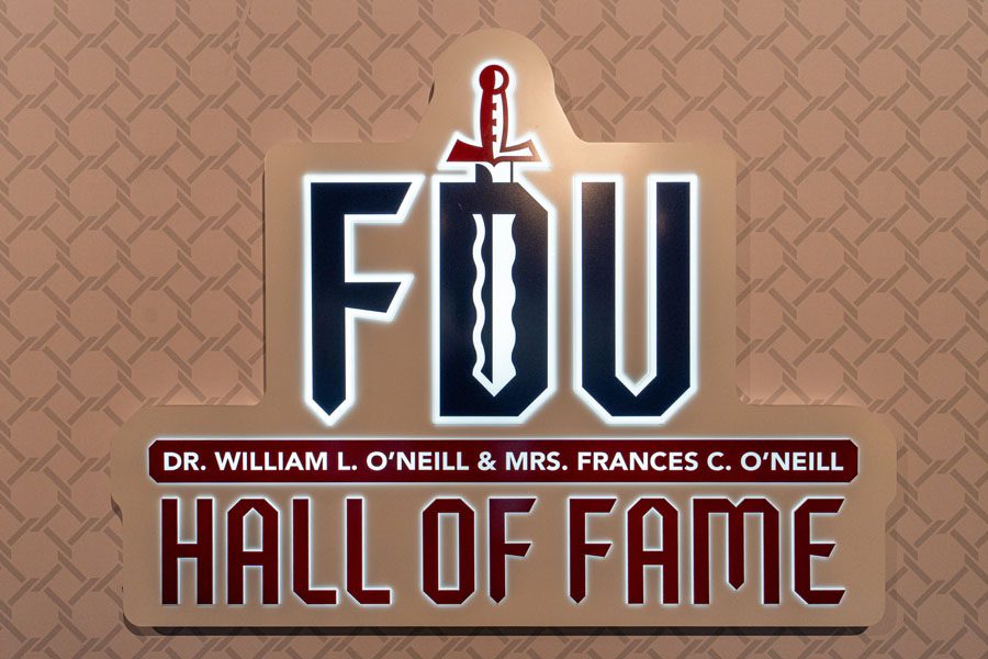 The ceremony also celebrated the unveiling of the Dr. William and Frances O’Neill Hall of Fame, now housed in the newly renovated Stratis Lounge. The illuminated display honors FDU Athletics Hall of Fame inductees and serves as a visible reminder of excellence, perseverance, and opportunity.